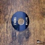 Economy plastic toggle switch ring in black with gold lettering. Has an adhesive back. Never been used!