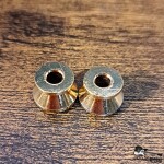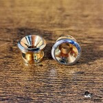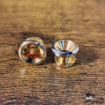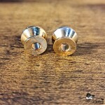 Here for sale is one pair of basic economy strap buttons without screws. These are in a gold finish, but the very tops have been worn down to chrome. In great shape!